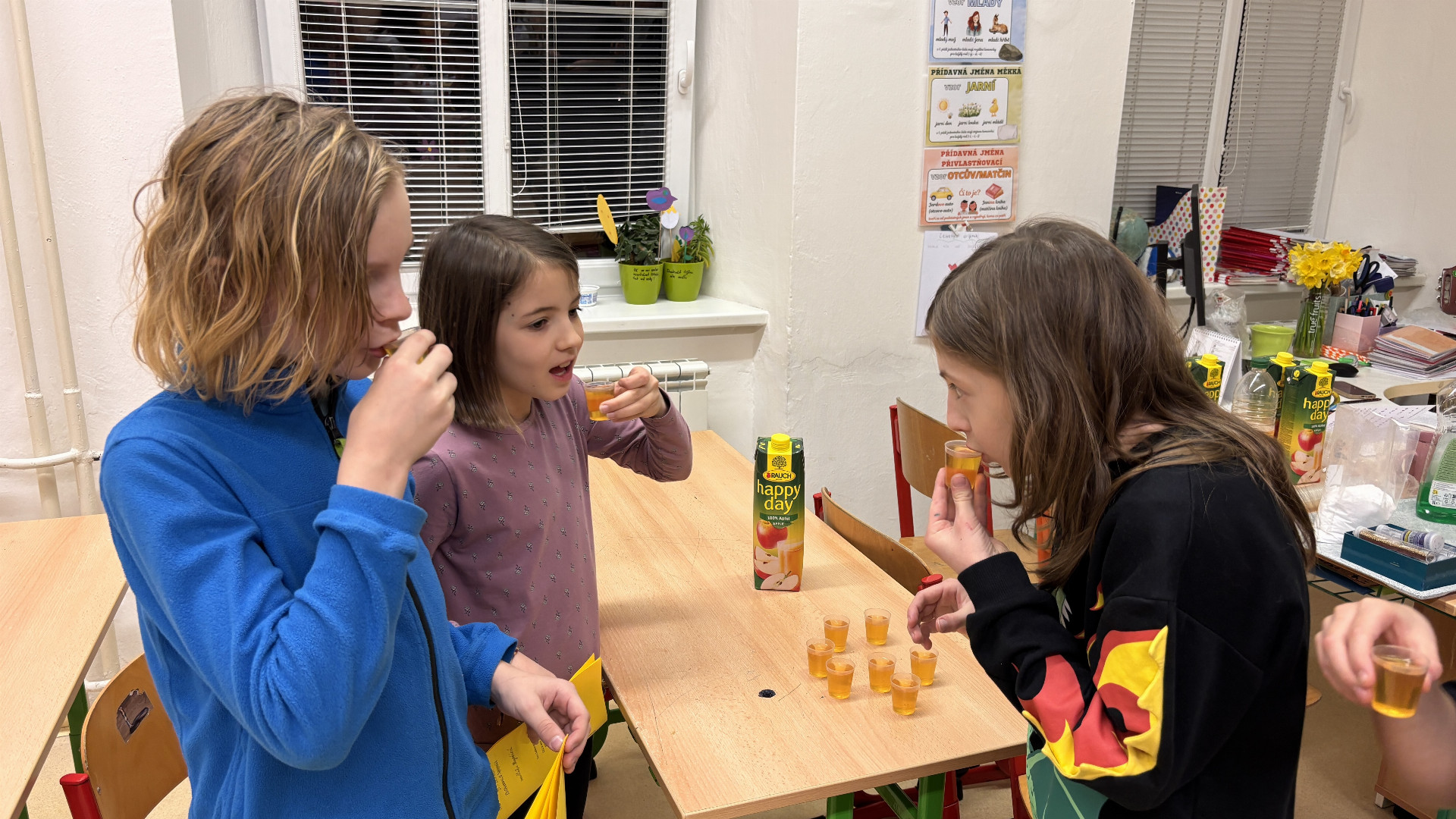 Děti se ale nespokojily jen s pasivním poslechem. Program byl nabitý aktivitami, které prověřily jejich důvtip i odvahu: luštily se křížovky a zapeklité šifry, pomocí QR kódů žáci vypočítávali matematické příklady, díky nimž získali další indicie, každý mohl pošeptat své největší přání do „utrženého sluchátka“ – a kdo ví, třeba se zítra splní, v improvizované laboratoři si děti vyzkoušely uvařit lektvar odvahy z babského ucha. Podle výrazů v obličejích fungoval okamžitě!