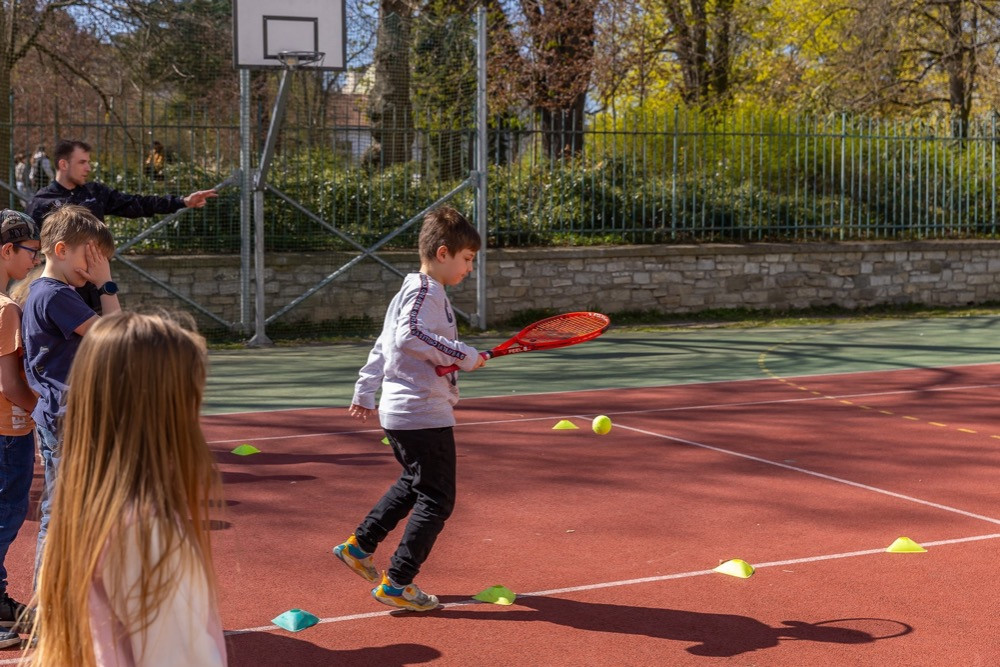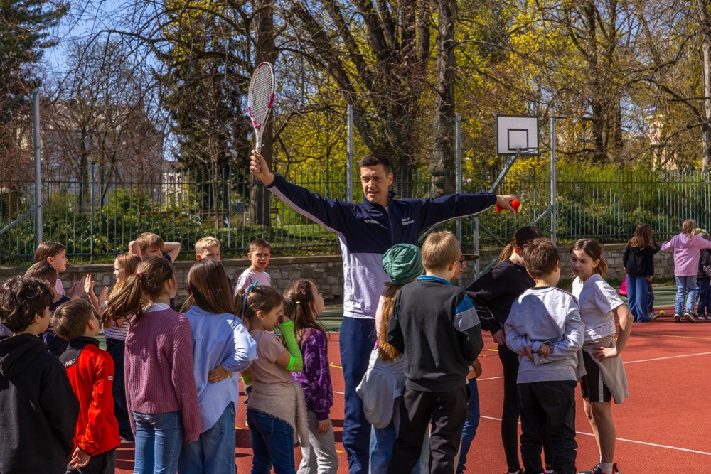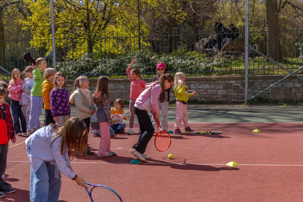 Dne 9. 4. 2026 jsme v naší školní družině s velkým nadšením přivítali trenéry z Tenisového klubu Ravelin. Děti měly jedinečnou příležitost vyzkoušet si první rány tenisovou raketou a zažít radost z pohybu i nové sportovní výzvy.