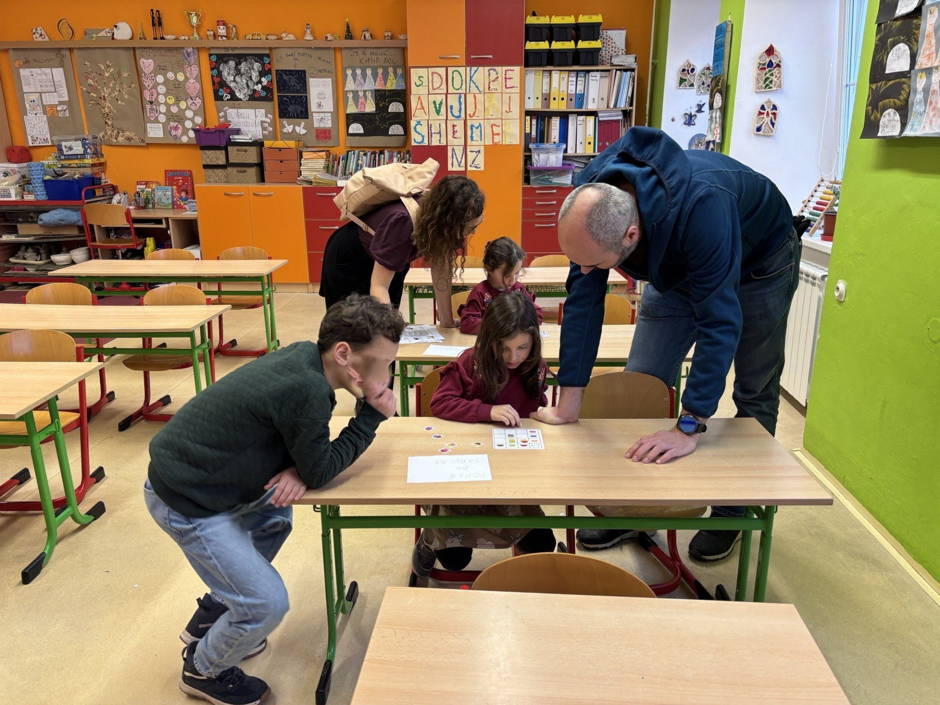 Hlavní program se však odehrával v učebnách, kde na malé objevitele čekalo několik stanovišť zaměřených na hravé učení. Na interaktivních tabulích si děti vyzkoušely moderní výuku, která je moc bavila. Poznávání stejných tvarů a přiřazování správných stínů k obrázkům prověřilo jejich postřeh a soustředění.
