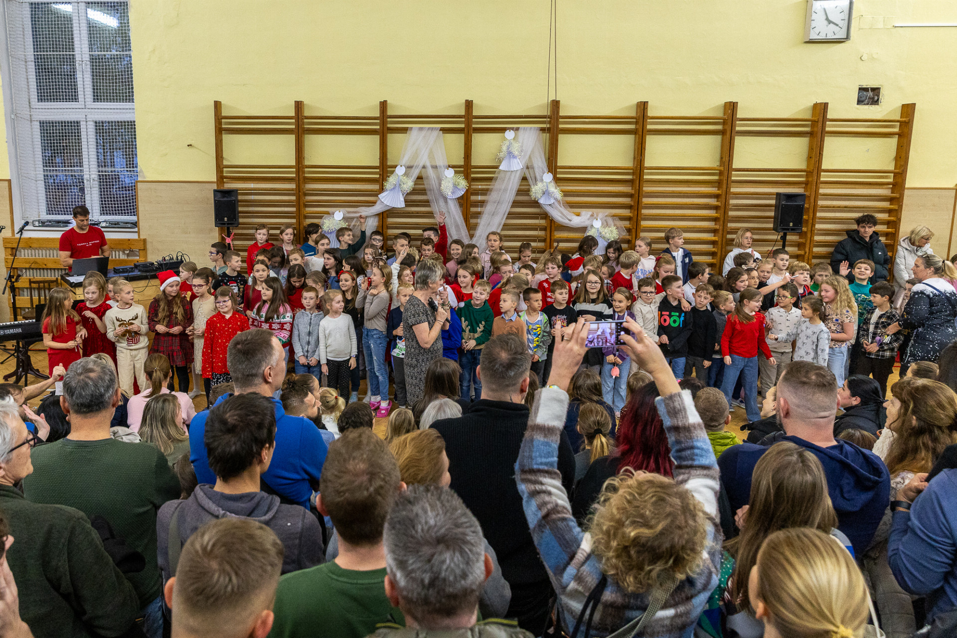 Program byl zahájen ve velkém stylu: Vystoupení žáků školy rozehřálo srdce přítomných. Příjemnou atmosféru navodily písničky pěveckého kroužku a vánoční taneček žáků 3. A. Celý úvod pak doplnily písničky žáků školní družiny.