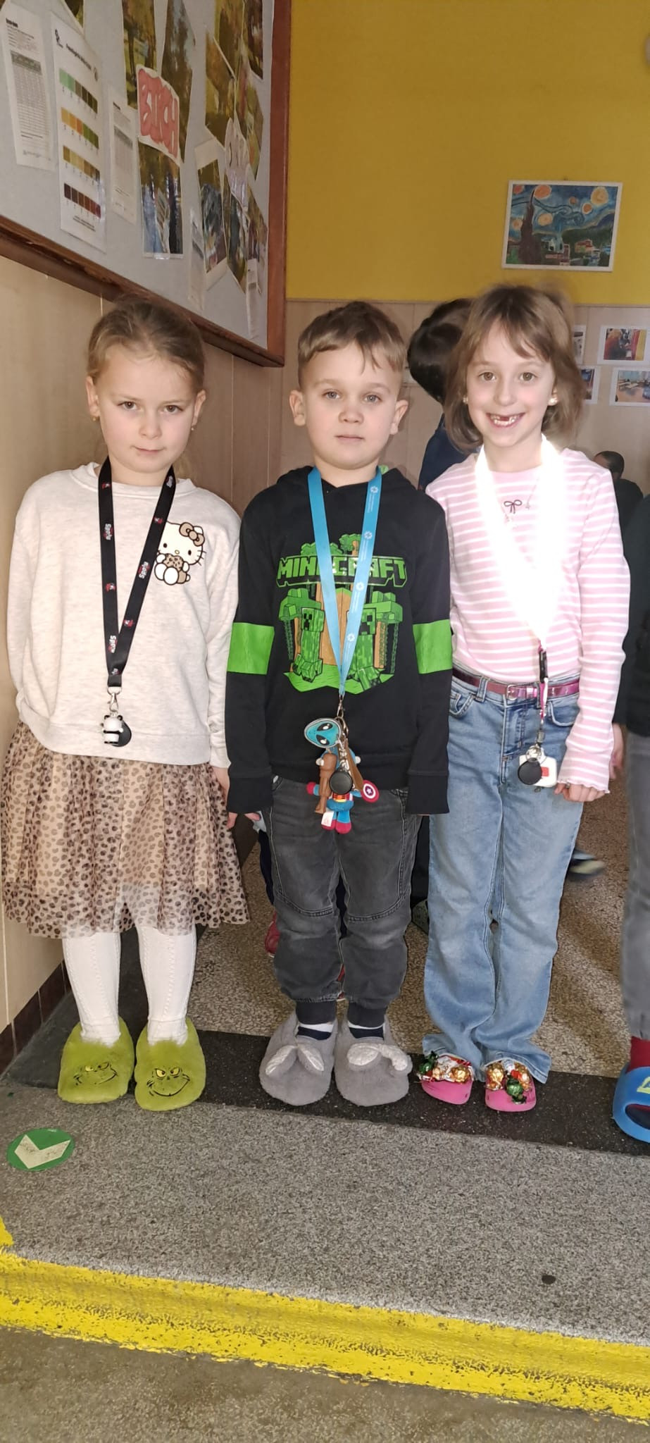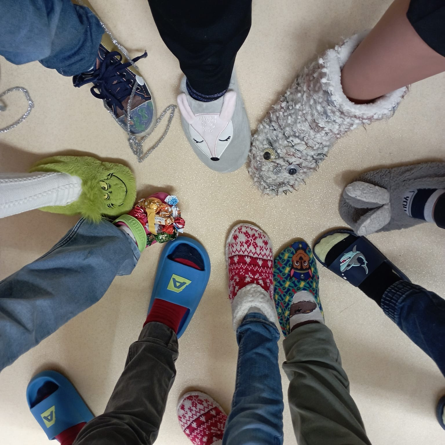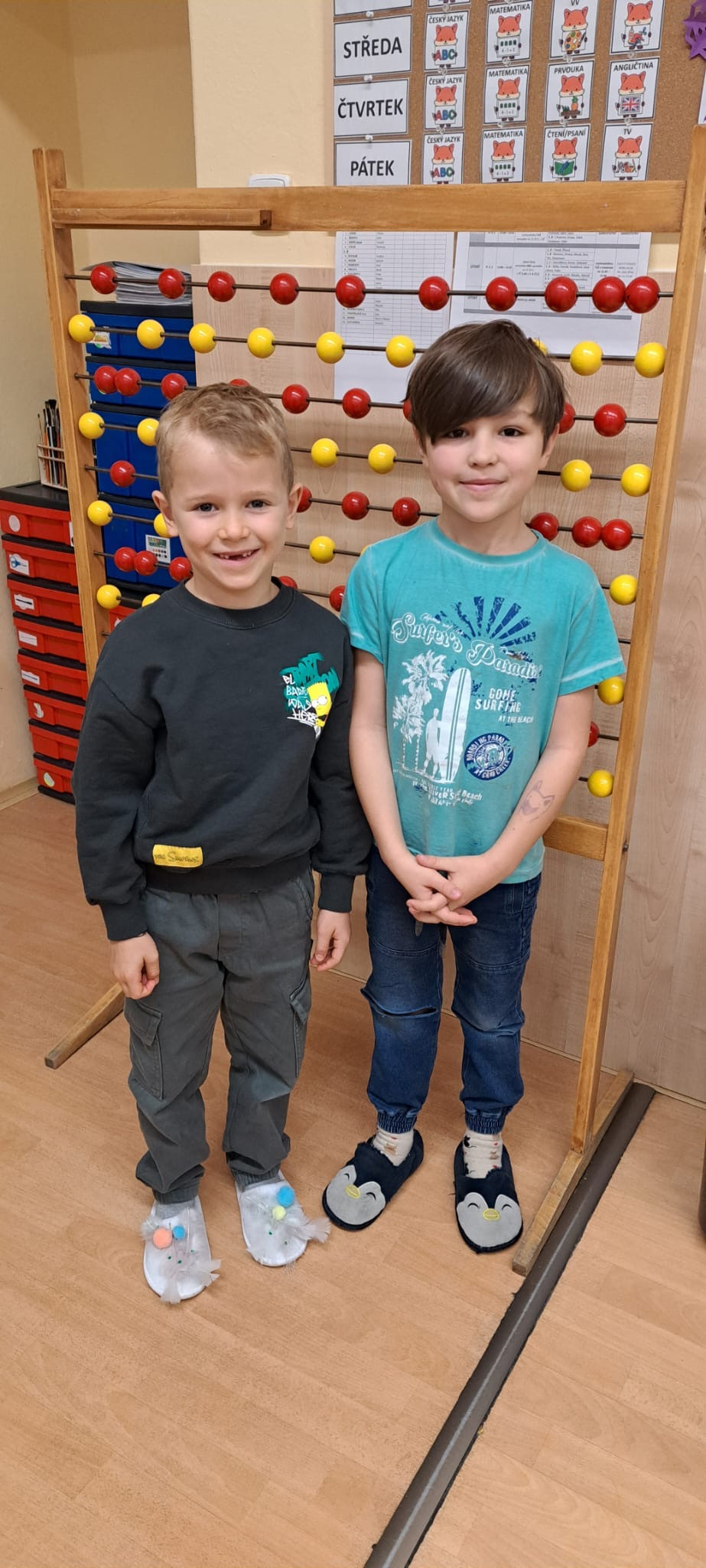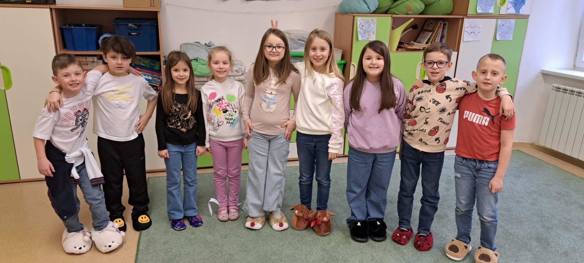 Dnešek byl ve znamení těch nejšílenějších papučí! Žáci dorazili v chlupatých, svítících i vlastnoručně vyrobených nebo ozdobených kouscích. Chodby se proměnily v barevnou a veselou módní přehlídku.