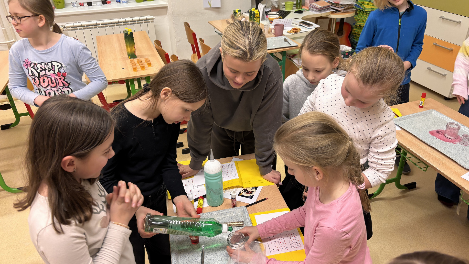Děti se ale nespokojily jen s pasivním poslechem. Program byl nabitý aktivitami, které prověřily jejich důvtip i odvahu: luštily se křížovky a zapeklité šifry, pomocí QR kódů žáci vypočítávali matematické příklady, díky nimž získali další indicie, každý mohl pošeptat své největší přání do „utrženého sluchátka“ – a kdo ví, třeba se zítra splní, v improvizované laboratoři si děti vyzkoušely uvařit lektvar odvahy z babského ucha. Podle výrazů v obličejích fungoval okamžitě!