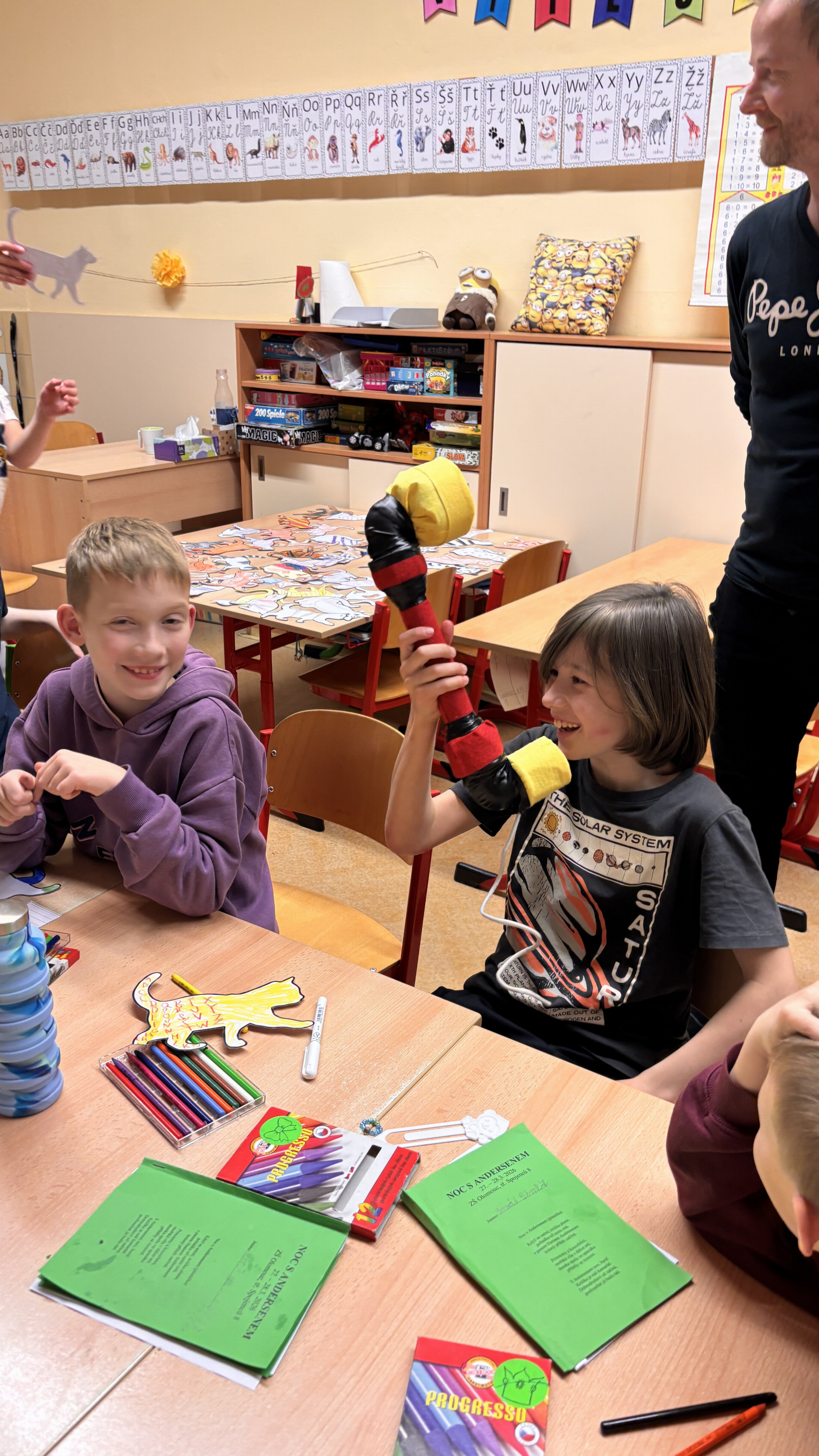 Letošní Noc s Andersenem se na naší škole nesla v duchu nespoutané fantazie. Celkem 51 žáků ze 3. a 4. tříd se na jeden večer a noc přeneslo do světa spisovatele a scénáristy Miloše Macourka. Pod taktovkou učitelů 1. stupně a paní asistentek na děti čekalo dobrodružství, kde neplatila žádná pravidla běžného světa – jen pravidla kouzel.