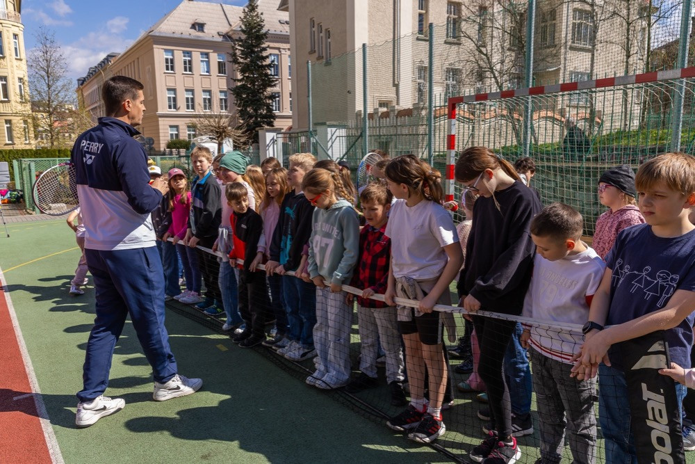 Dne 9. 4. 2026 jsme v naší školní družině s velkým nadšením přivítali trenéry z Tenisového klubu Ravelin. Děti měly jedinečnou příležitost vyzkoušet si první rány tenisovou raketou a zažít radost z pohybu i nové sportovní výzvy.