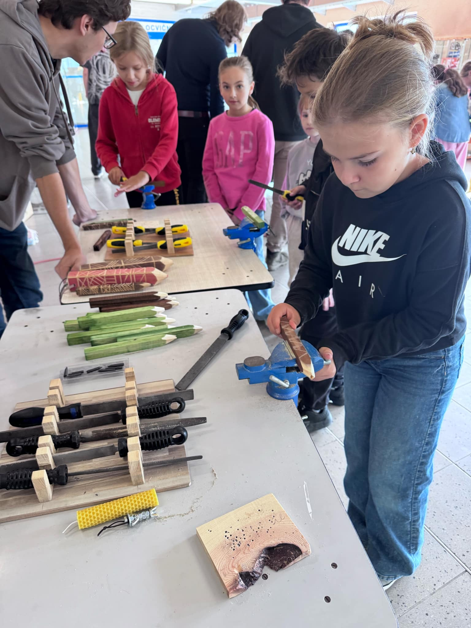 Podívejte se, jak si žáci 4. A užili tvořivé polytechnické dopoledne. Žáci 4. A se dnes zúčastnili programu Tvořivá polytechnika, který probíhal v rámci MAP IV Olomouc. Cílem programu bylo rozvíjet technické dovednosti, tvořivost a spolupráci žáků prostřednictvím praktických polytechnických aktivit. Děti si vyzkoušely práci s různými materiály i nástroji – zatloukání hřebíků, výrobu dřevěných zvířátek, práci s 3D perem, zapojování jednoduchých obvodů i kreativní tvoření. Program probíhal pod vedením zkušených lektorů, kteří dětem připravili pestré úkoly podporující zručnost, logické myšlení a technickou představivost. Děti si den velmi užily a odnesly si nejen vlastnoručně vyrobené výrobky, ale také spoustu nových zážitků a inspirace do dalšího učení.